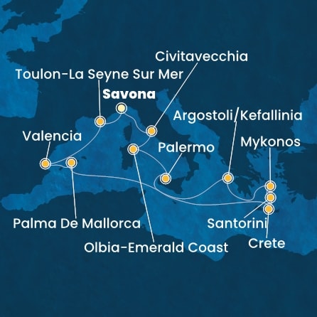 Croazieră Costa Cruises, iunie 2025 - Italia, Spania, Insulele Baleare, Grecia